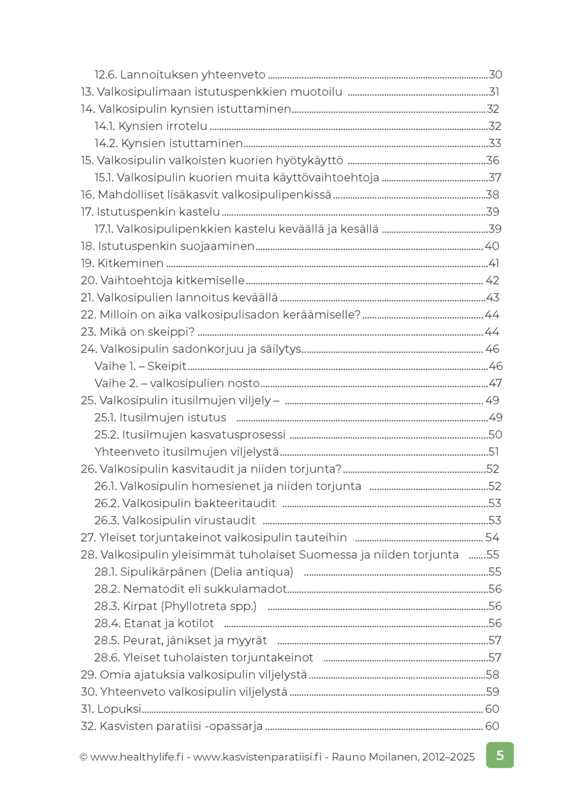 Oppaan on laatinut Viljelyvelho Rauno Moilanen, joka on yli 35 vuoden ajan kehittänyt luonnonmukaisia viljelymenetelmiä ja auttanut lukuisia puutarhureita saamaan maastaan enemmän irti – ilman kemiallisia lannoitteita tai torjunta-aineita.